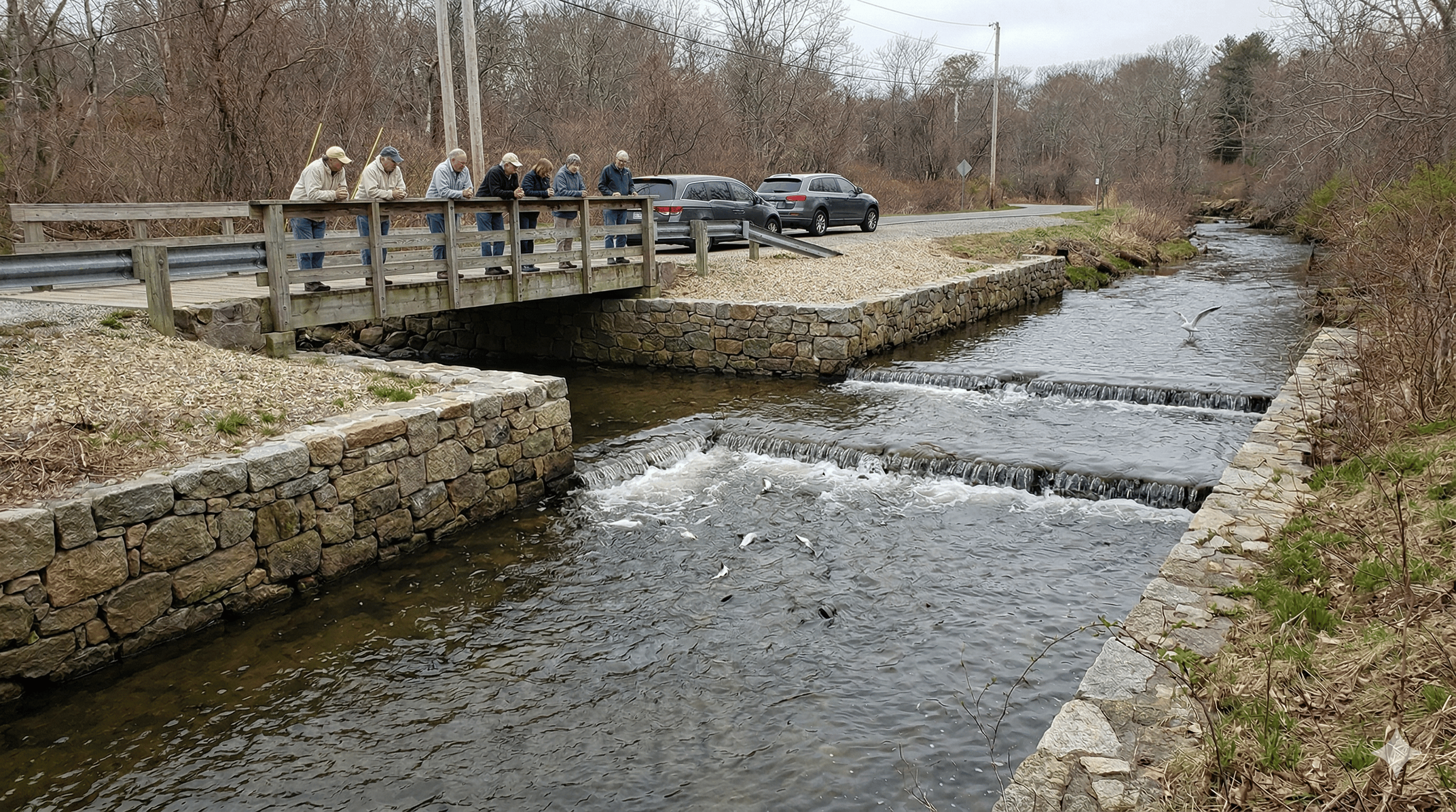 Five years later, one of Brewster’s surest signs of spring is fully back. The herring are running at Stony Brook again, and for the first time in years, the whole Mill Site is open with them — the south side reopened on March 28, 2026, and the north side herring run followed on April 4, 2026.